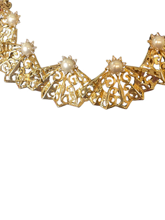 Oscar De La Renta Gold Crystal Pearl Necklace