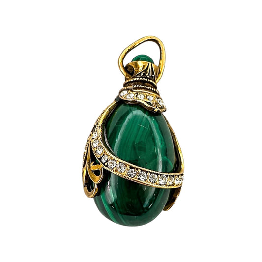 Vintage Malachite Egg Pendant With Gold Tone Filigree Detailing