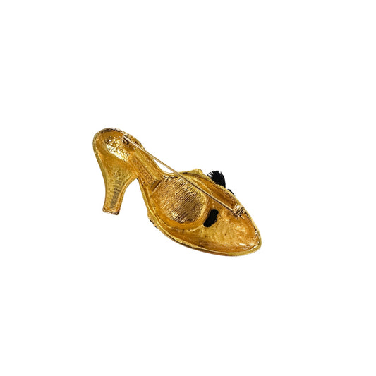 Vintage Natori Gold Tone Shoe Brooch With Black Bow Detail
