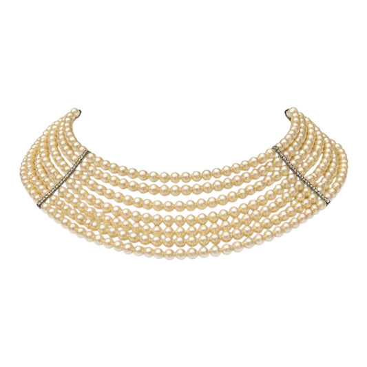 Vintage Multi Strand Faux Pearl Choker Necklace With Rhinestone Bars