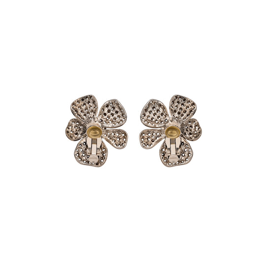 Vintage Multi-Tone Crystal Floral Clip-On Earrings Sterling Silver