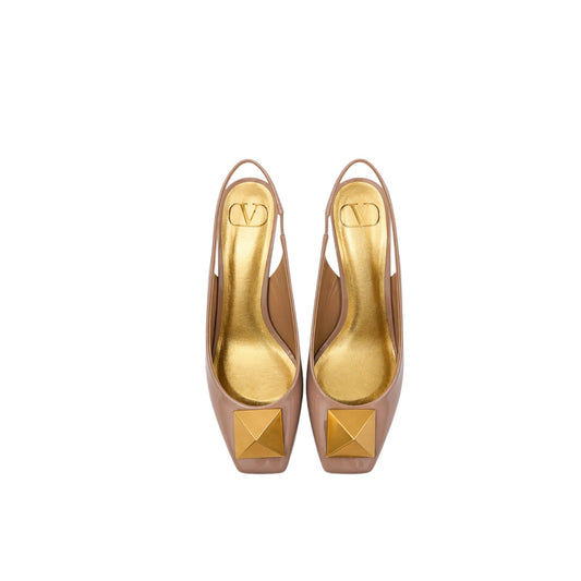Valentino Garavani Nude Patent Leather Slingback Pumps With Gold Pyramid Stud Size 38
