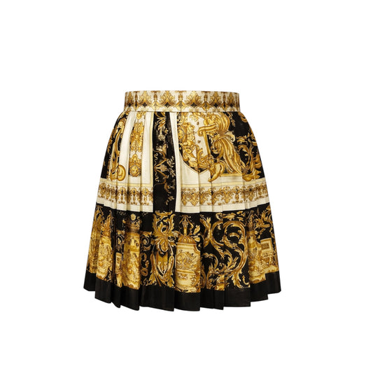 Versace Gold Baroque Tribute Silk Pleated Skirt