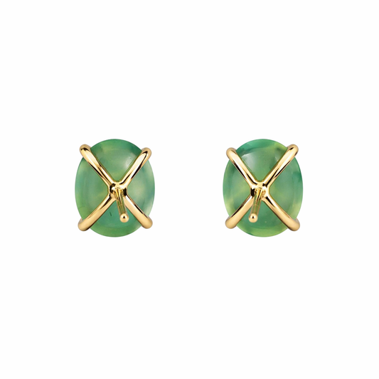 14 Karat Gold Green Chalcedony Oval Stud Earrings