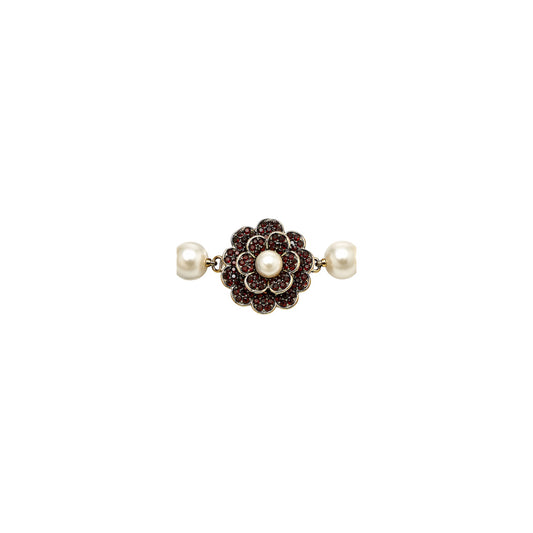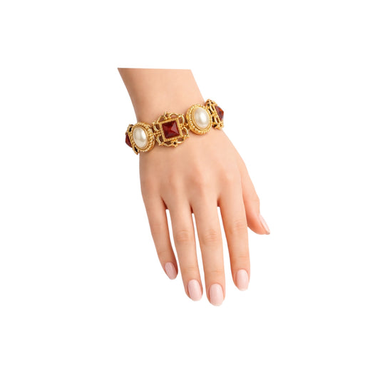 Ben Amun Gold Tone Faux Pearl And Red Stone Statement Bracelet