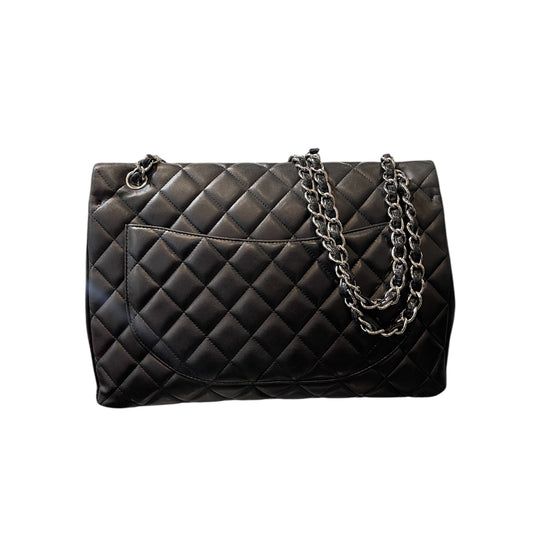 Chanel Black Calfskin Quilted Single Flap Maxi Classic Handbag.