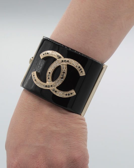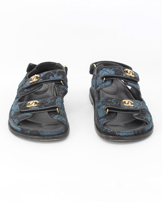Chanel CC Dad Slingback Sandal Black & Blue Denim Size 38.5
