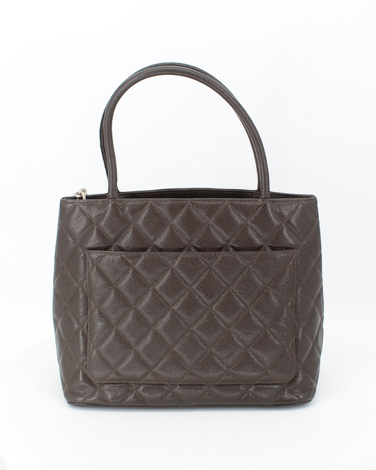 Chanel Vintage Caviar CC Brown Medallion Handbag