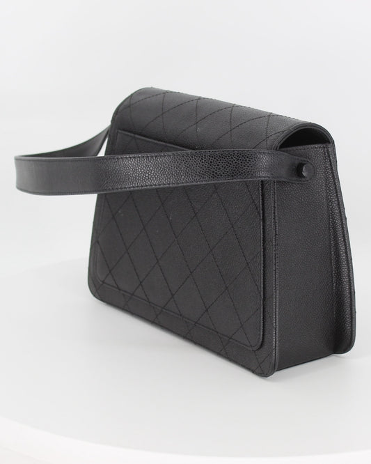 Chanel Vintage CC Flap Shoulder Bag Stitched Caviar Small