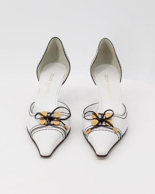 Louis Vuitton White & Black Leather Vintage Pumps Size 38