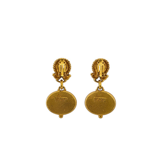 Lazaro Intaglio Horse Cameo Drop Earrings Gold Tone