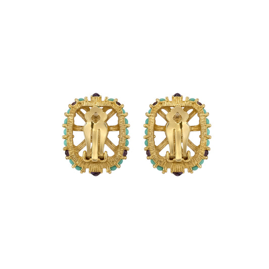 François Renaud Gold Tone Cabochon Statement Clip-On Earrings