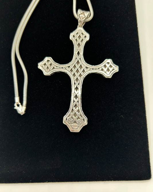 John Hardy Sliver Black Leather Cross Pendant Necklace