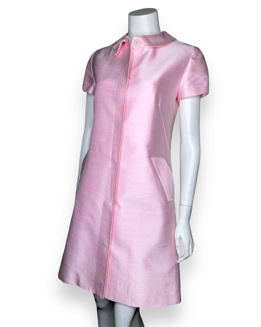 Lee Anderson Couture Pink Raw Silk Cap Sleeve Dress Size 2