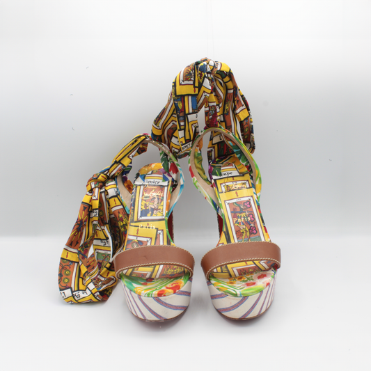 Christian Louboutin Satin Multi-Print Platform Heel Size 38