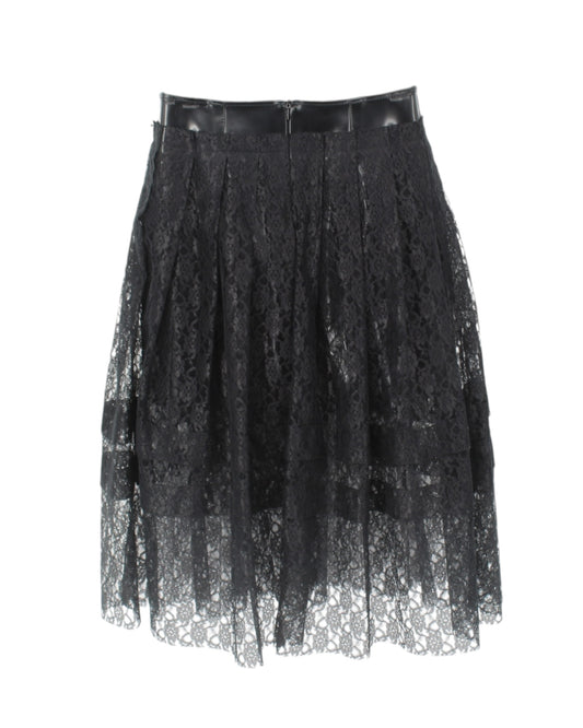 Philosophy DiLorenzo Black Lace & Leather Midi Skirt Size 2