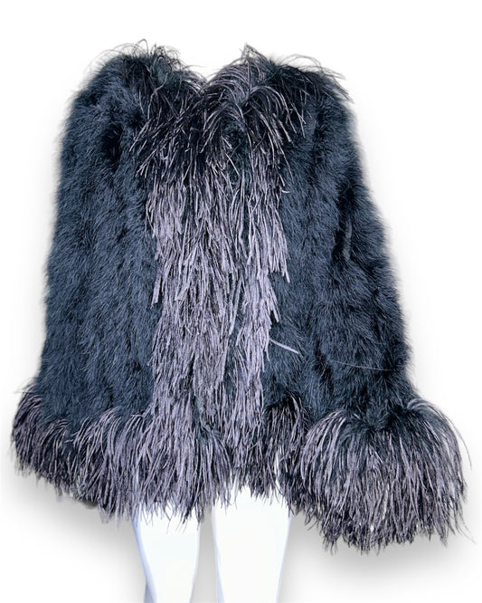 Vintage Saint Laurent Rive Gauche Black Ostrich Feather Jacket Size 42 FR