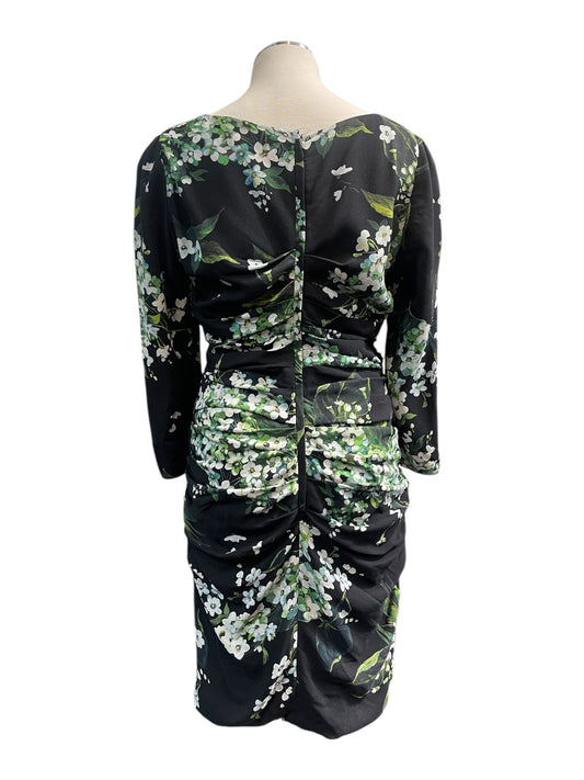 Dolce and Gabbana Blk/Grn Floral Print Silk Dress