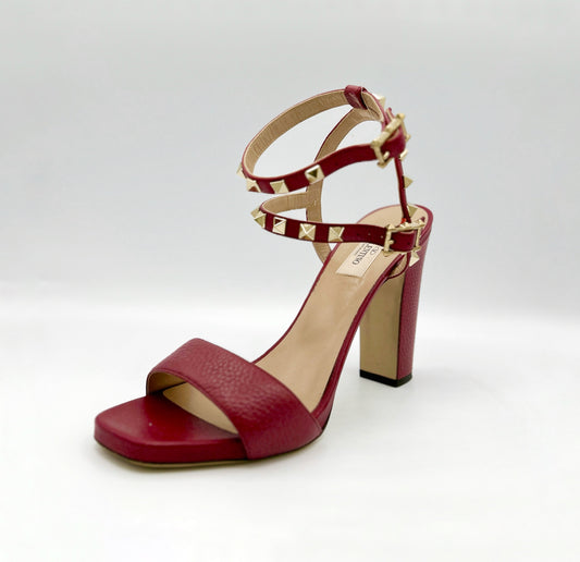 Valentino Burgundy Gold Studded Ankle Strap Heels Size 39