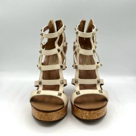 Valentino White Gladiator Studded Cork Wedge Heels Size 36