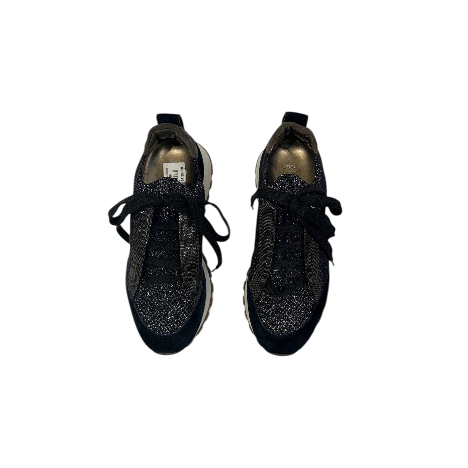 Brunello Cucinelli Navy Knit & Suede Sneakers With Lug Sole Size 7