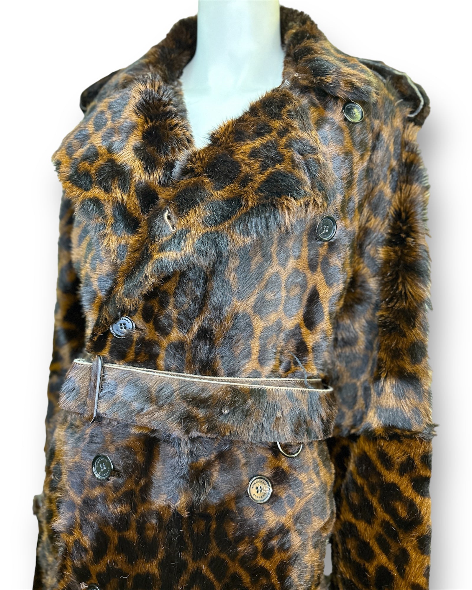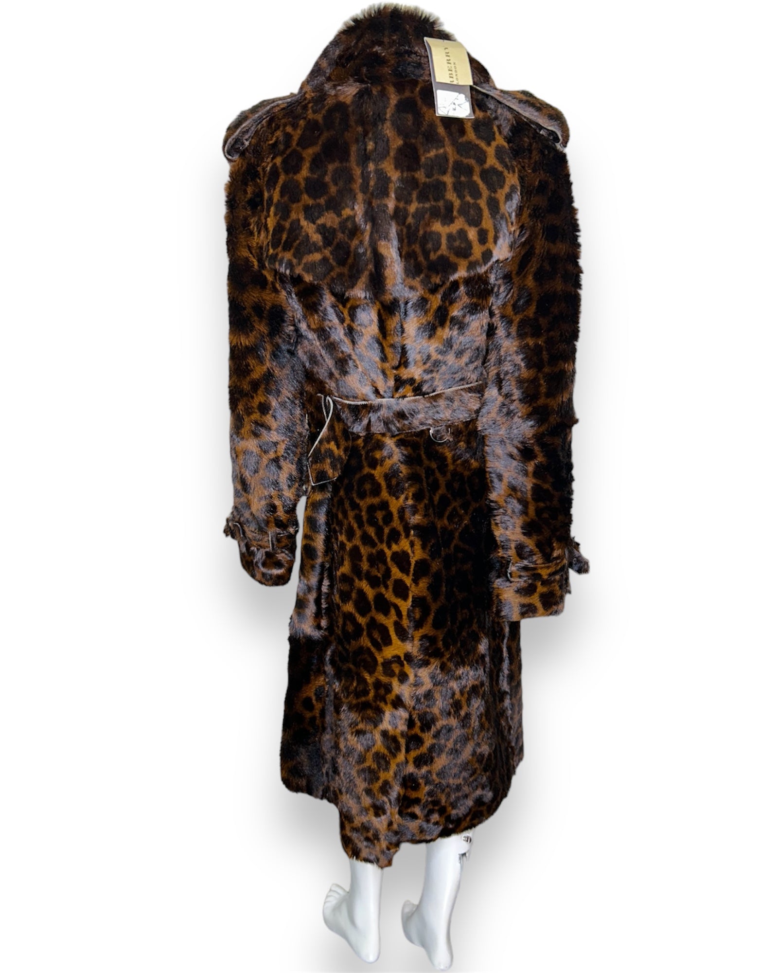 Burberry London Animal Print Shearling Trench Coat Size XL