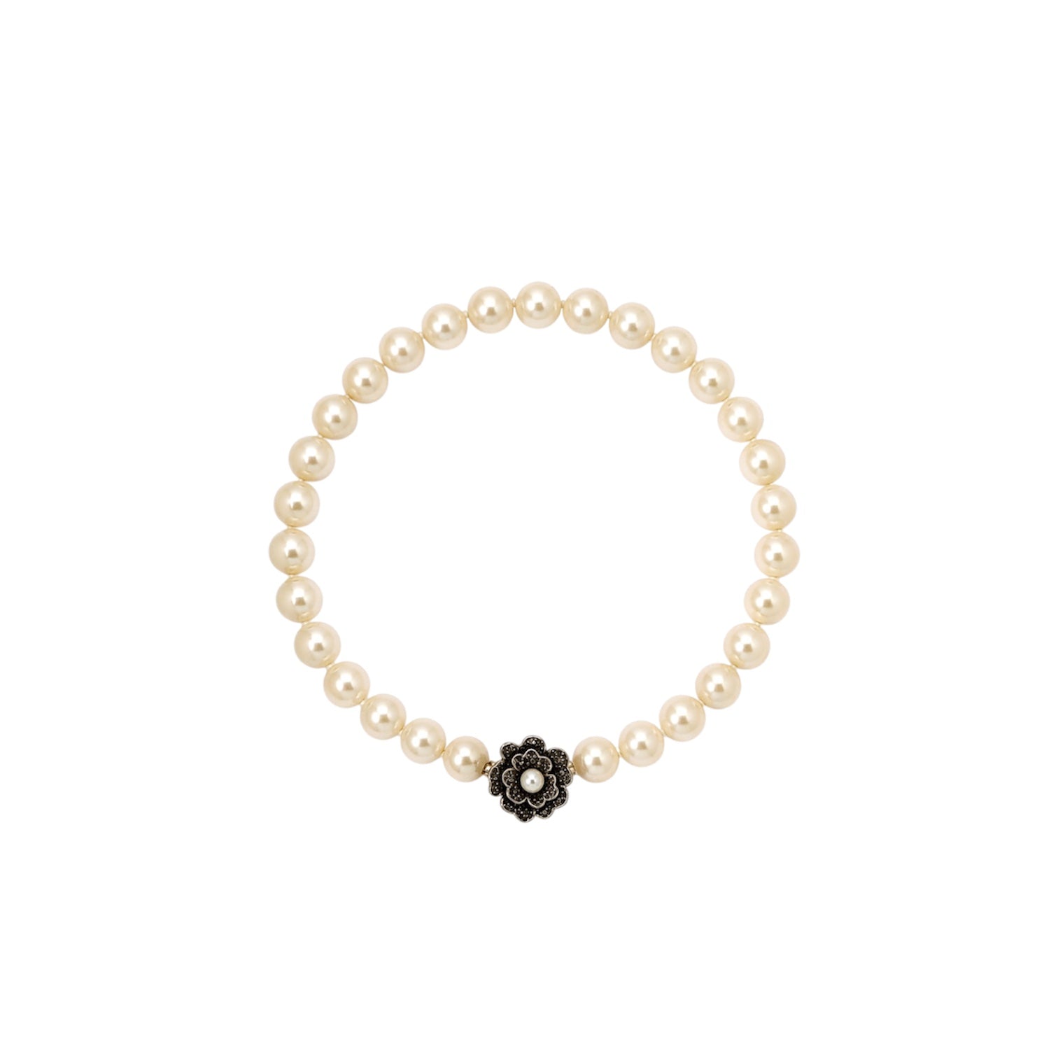 Carolee Vintage Faux Pearl Necklace Floral Rhinestone Clasp