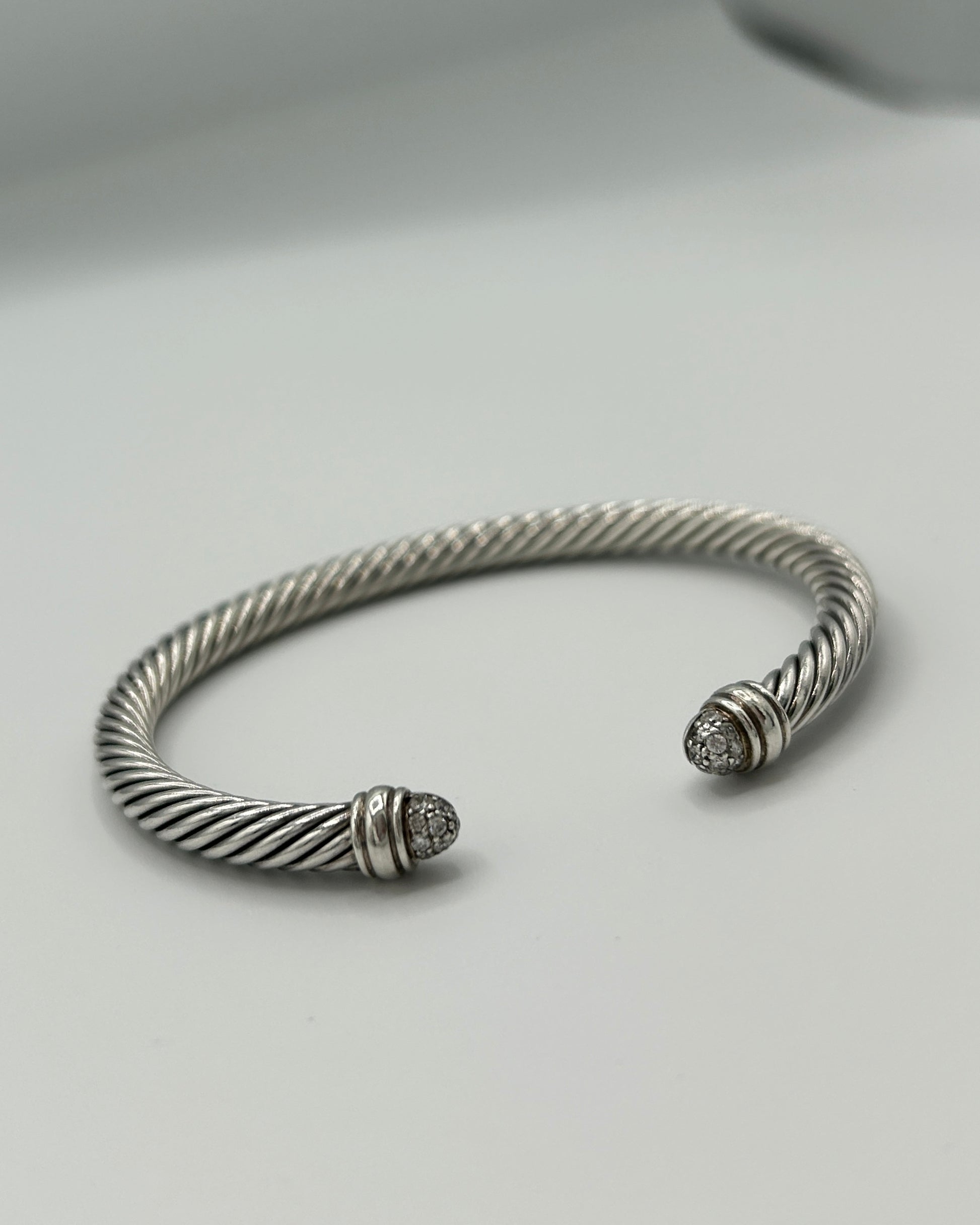 David Yurman Classic Cable Bracelet Sterling Silver with Pavé Diamond Domes Bracelet