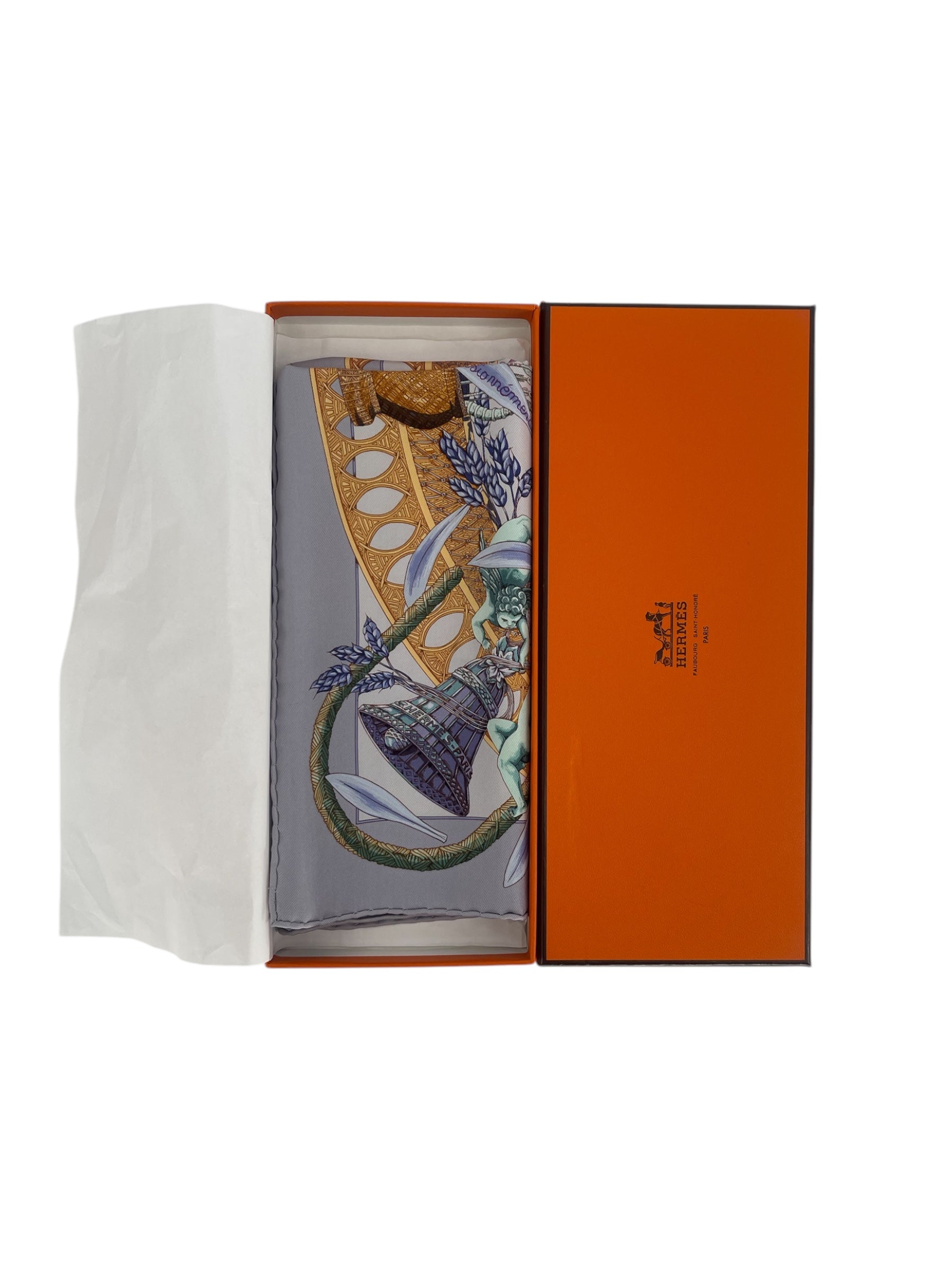 Hermes Silk Scarf Designed By Annie Faivre. Design Features A Daisy With Cherubs And Floral Elements. Inspired By The "He Loves Me, He Loves Me NotGame, With Petals Bearing French Phrases Like "Je T'Aime" (I Love You. Made Of 100% Silk Chiffon. Annie Faivre Is Known For Her Abstract And Symmetrical Designs. Vibrant Flowy And Ethereal When Worn. Considered A Rare And Collectible Vintage Item.