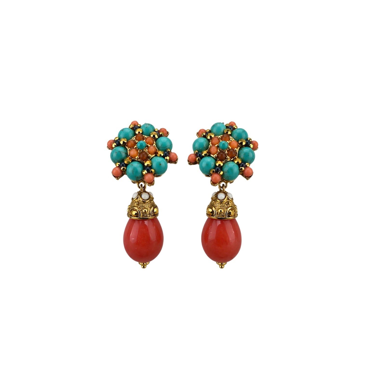 José And Maria Barrera Turquoise Coral Cluster Drop Earrin
