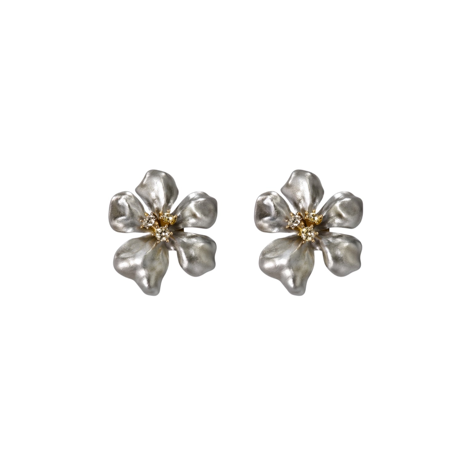 Kenneth Jay Lane Vintage Floral Clip-On Earrings Silver Tone With Gold Center Detail