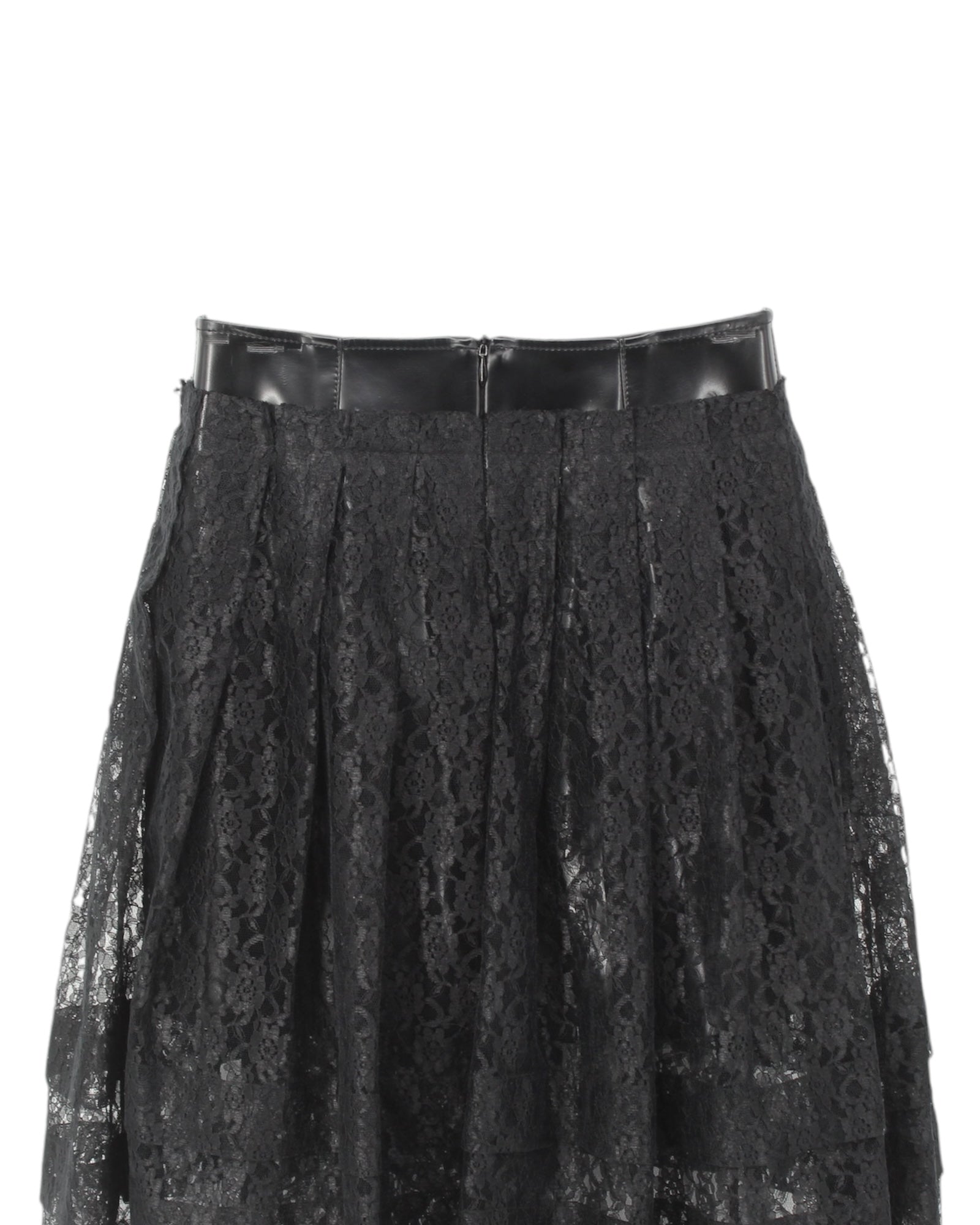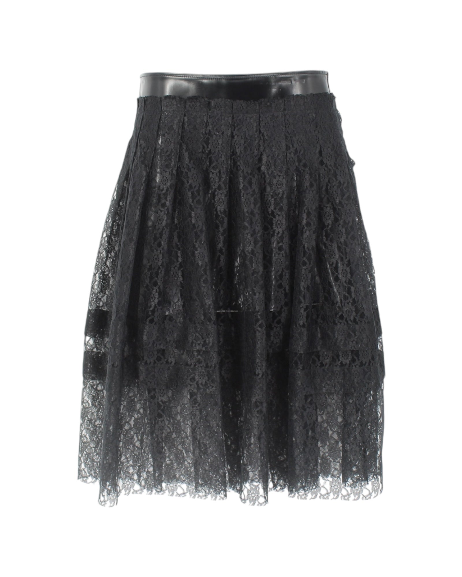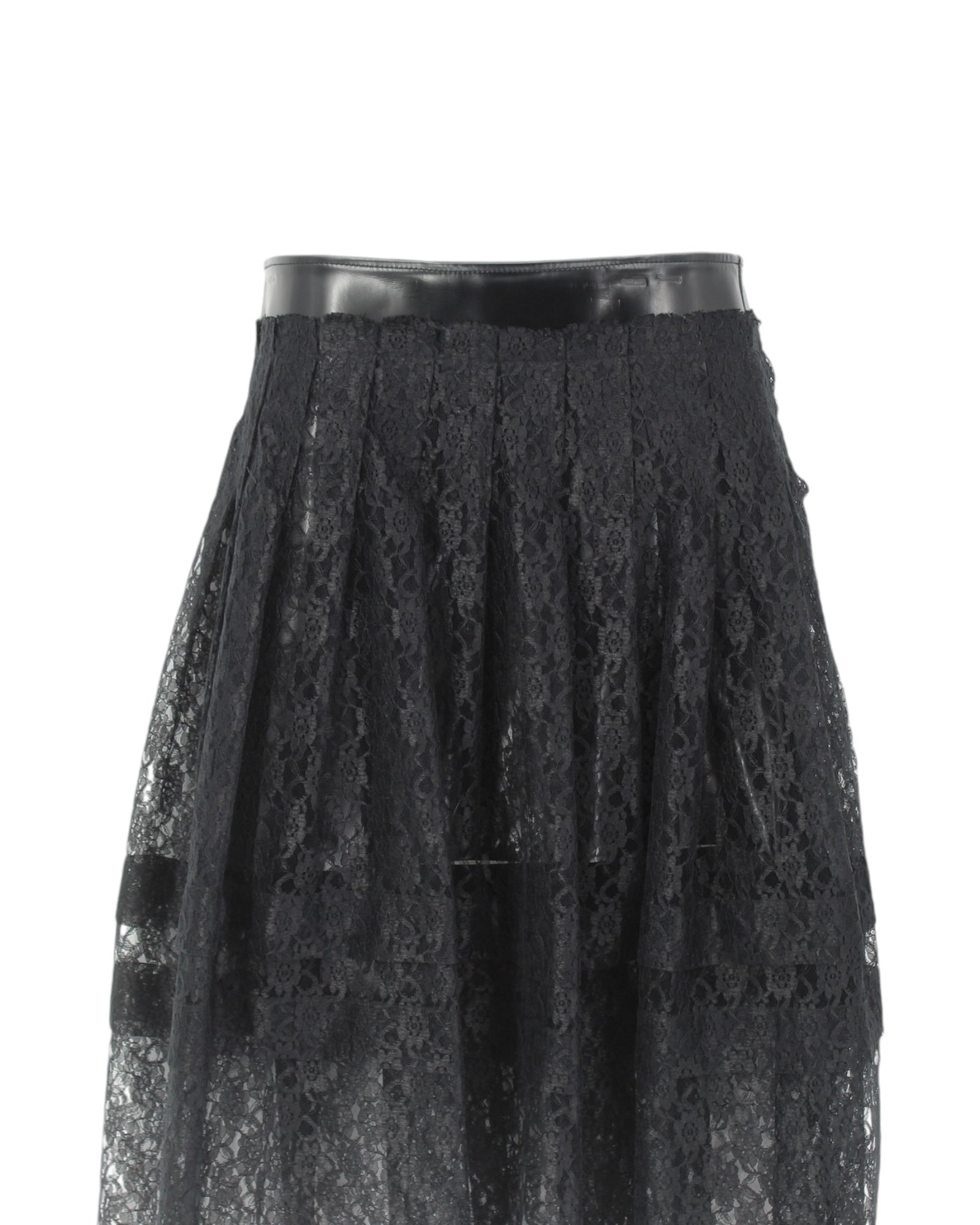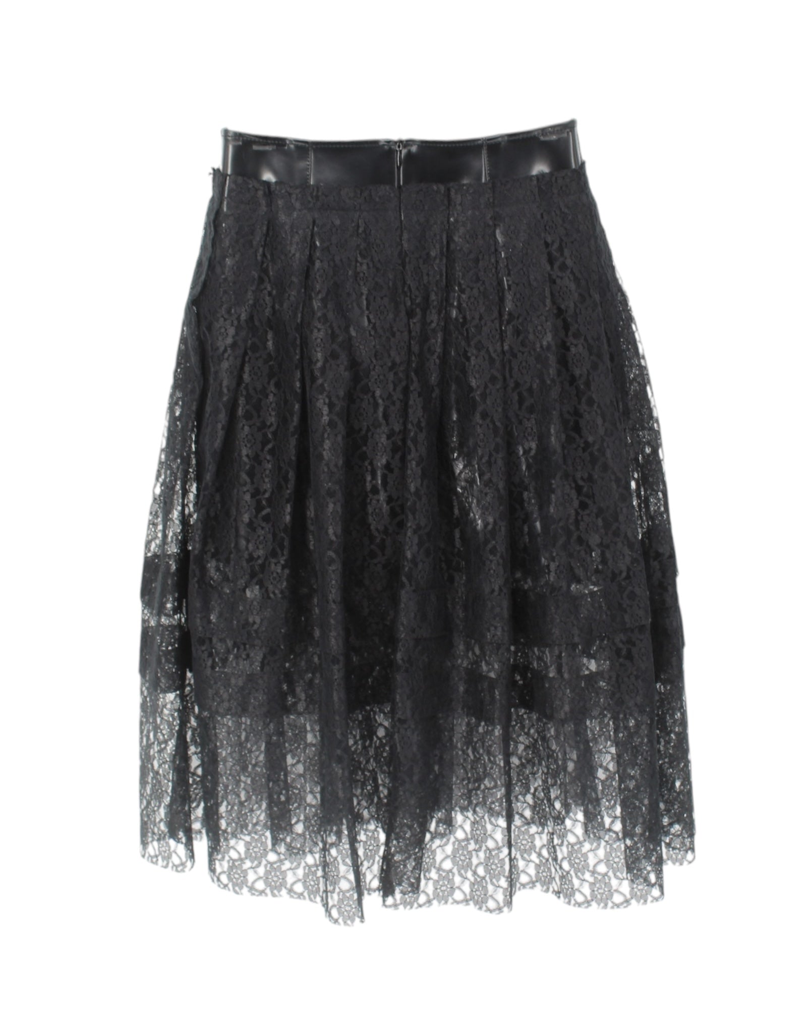 - Lace Pleats with Attached Leather Mini Skirt Underlayer